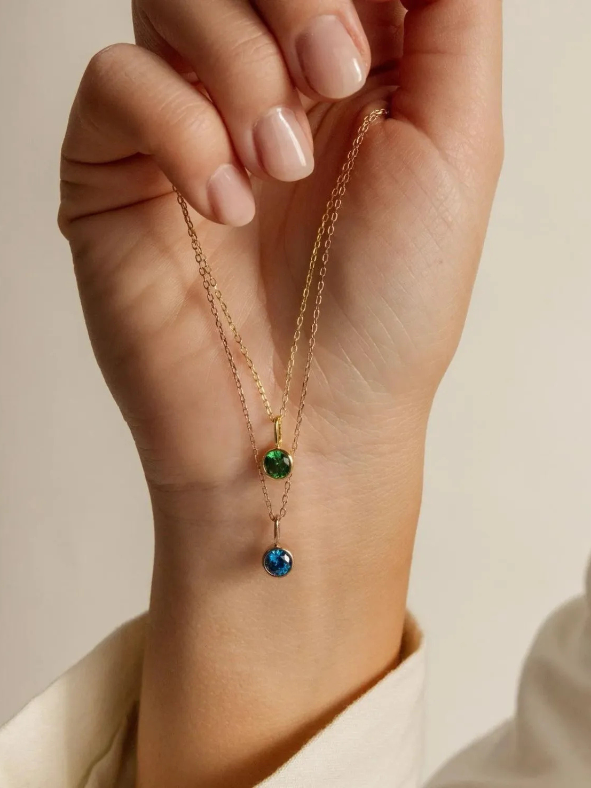 Découvrez ESSENZA, notre collier de pierre de naissance personnalisé. Choisissez entre l'or ou l'argent et ajoutez une pierre colorée pour une touche unique.