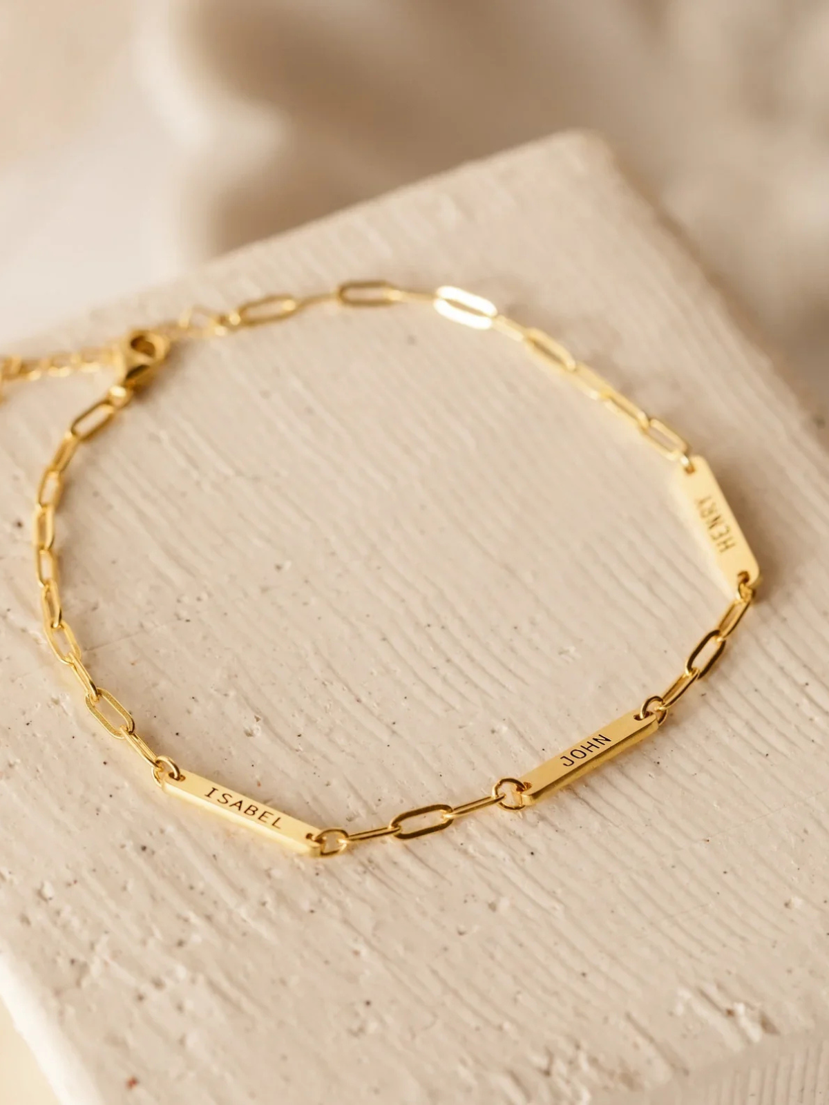 Le bracelet ALMA est réel quelque chose de spécial. Imaginez votre propre bijou avec les noms des personnes que vous aimez le plus. Comme c'est beau ? Et vous pouvez choisir parmi de belles couleurs : or éclatant, argent élégant ou or rose romantique. Ce bracelet est le mélange parfait d'élégance et de touche personnelle.